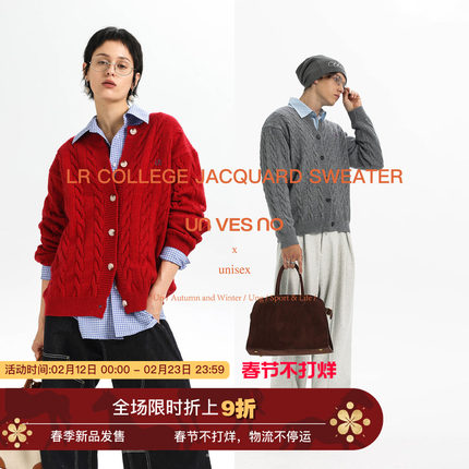 【仿羊绒绞花】Unvesno(UN) 拉夫学院澳洲针织圆领开衫针织毛衣厚