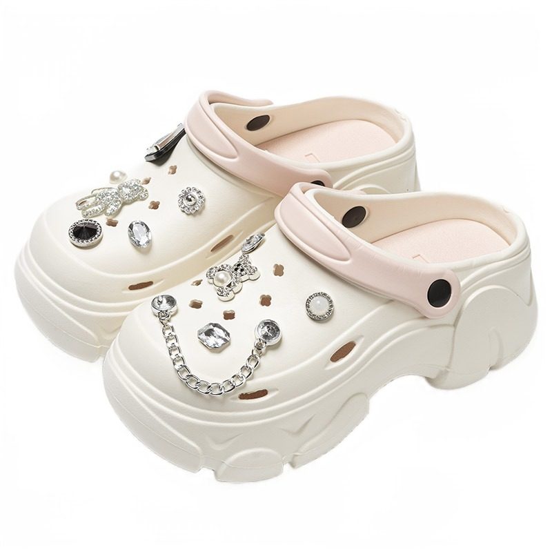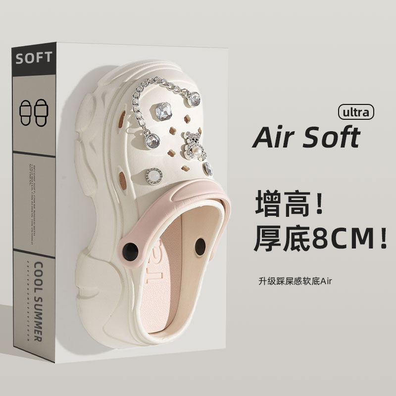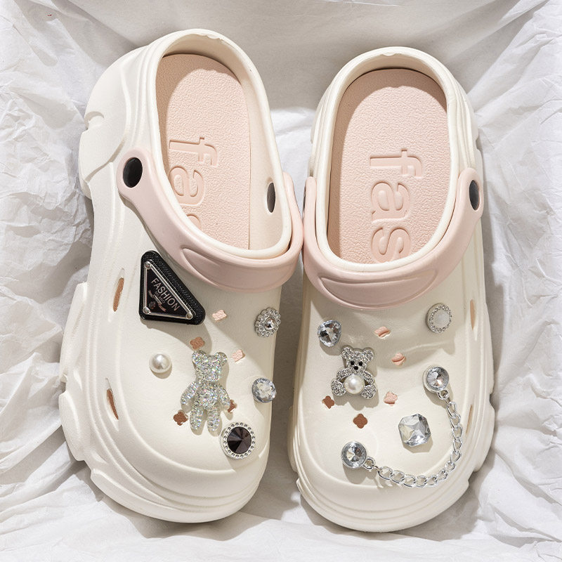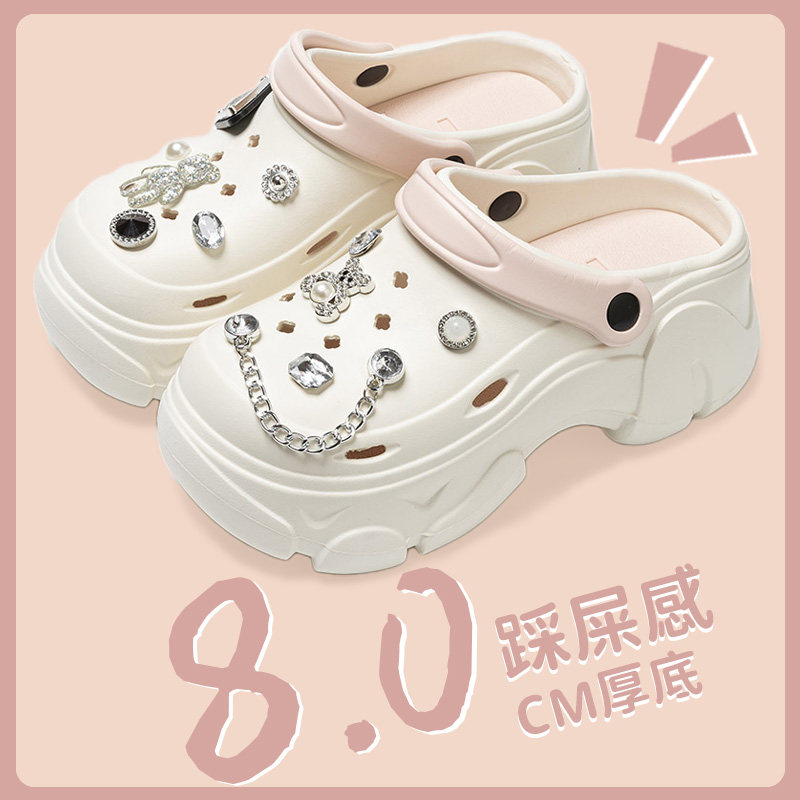 钻石熊洞洞鞋女夏季2025新款海边沙滩包头厚底增高凉拖鞋女士外穿