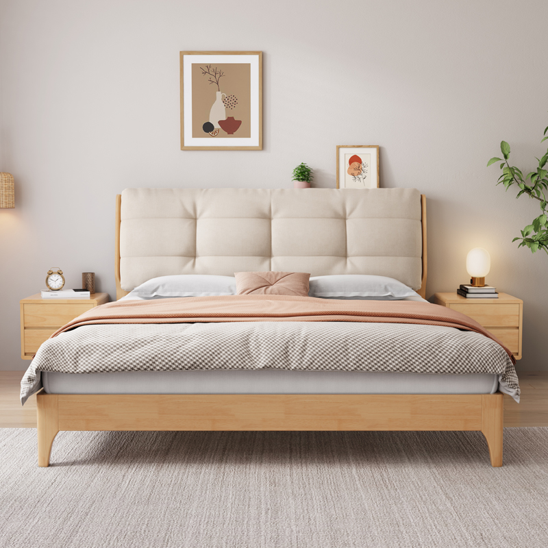 北欧全实木床1.8米现代简约1.5F米云朵软靠床主卧婚床卧室家具