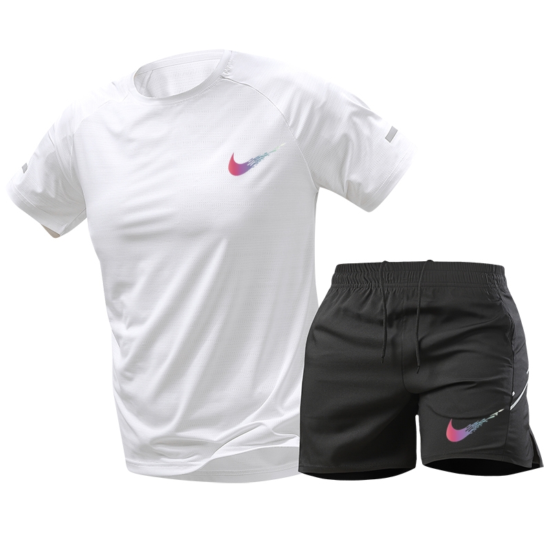 奥莱折扣运动套装男大码夏季速干短袖t恤弹力速干衣圆领宽松透气