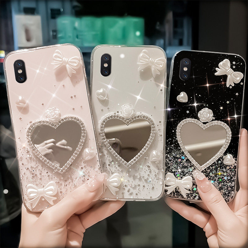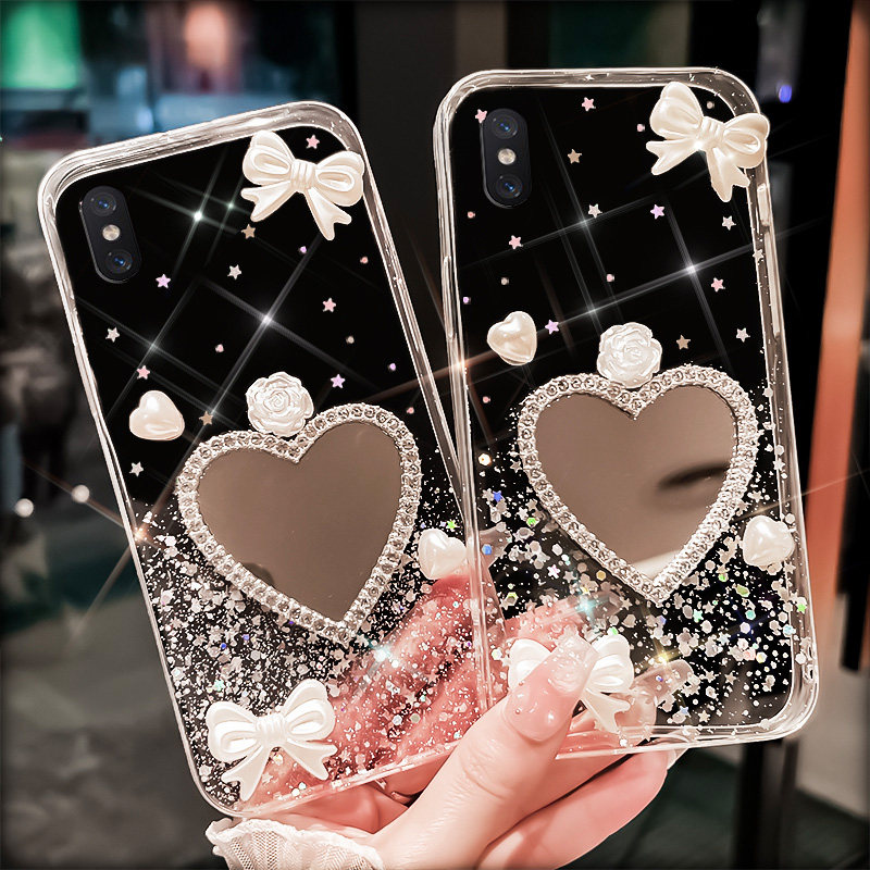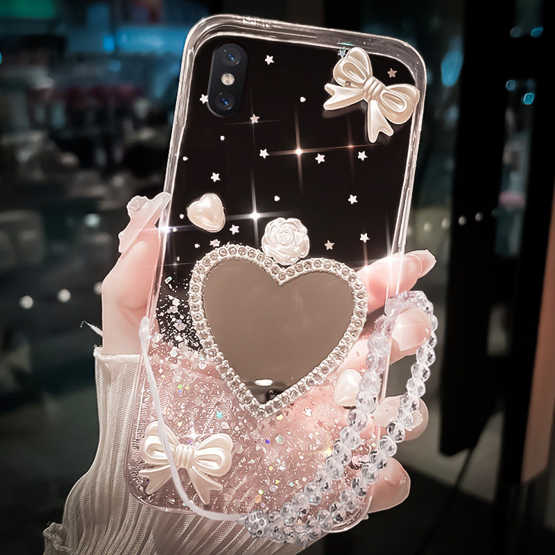 透明奢华高级感带镜子适用iPhone苹果X手机壳xsmax硅胶xr新款8plus补妆镜i7全包6sp新品se3/2防摔5s带手链14
