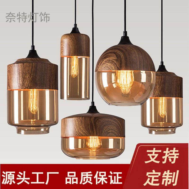 简约木纹创意lotf餐厅客厅吧璃玄关橱窗台复古工业风玻吊灯