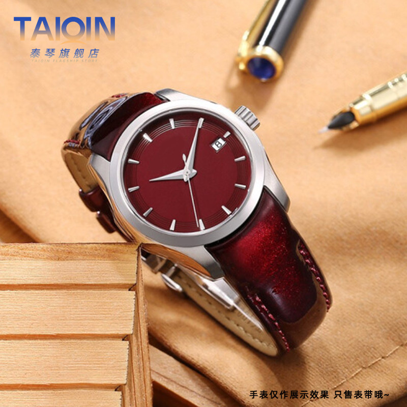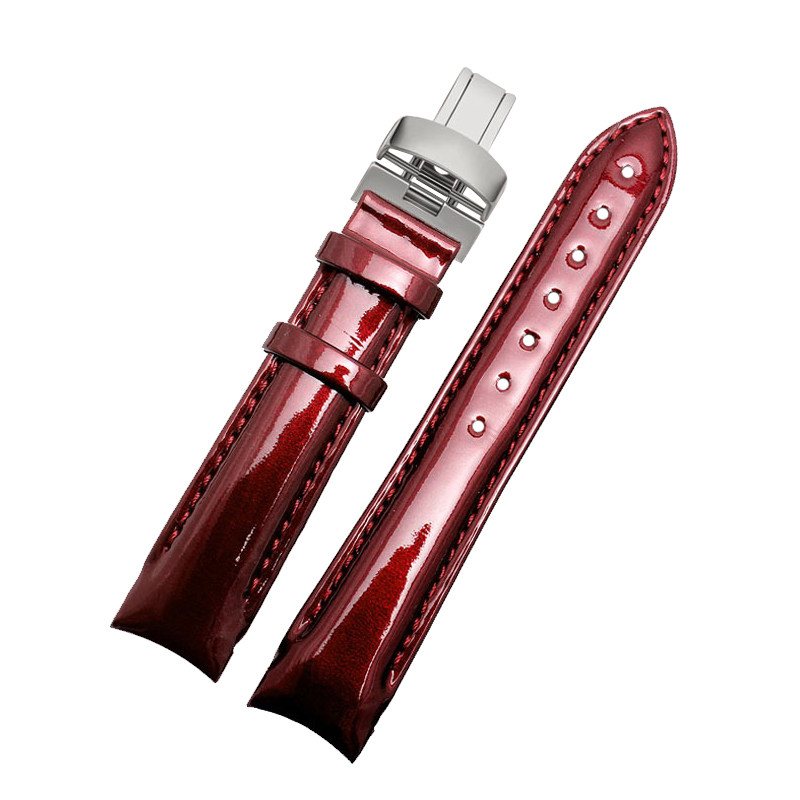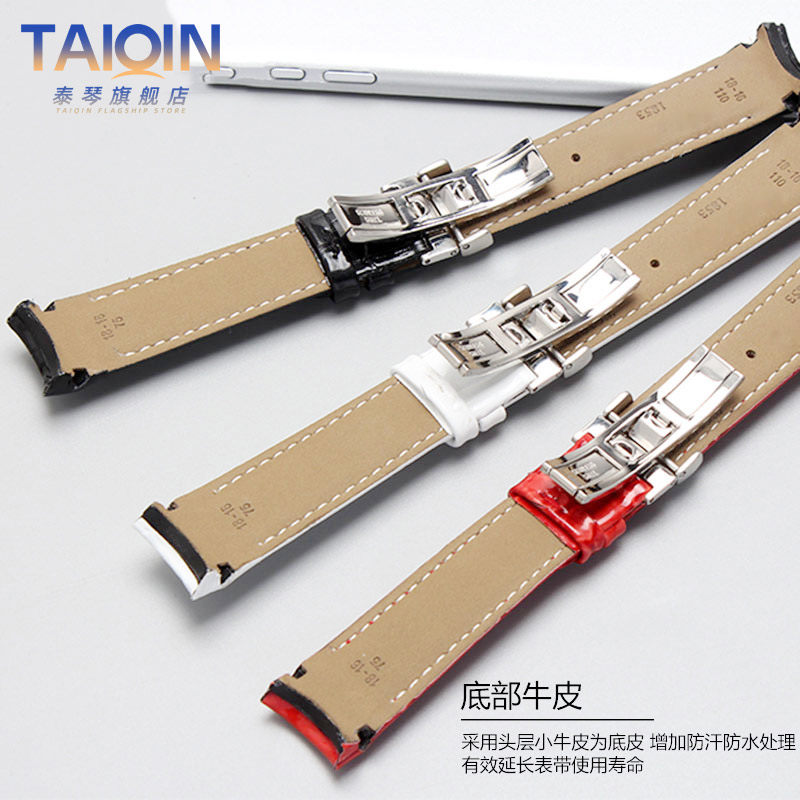 适配天梭1853库图T035.210真皮手表带女表T035.207表带酒红色18mm