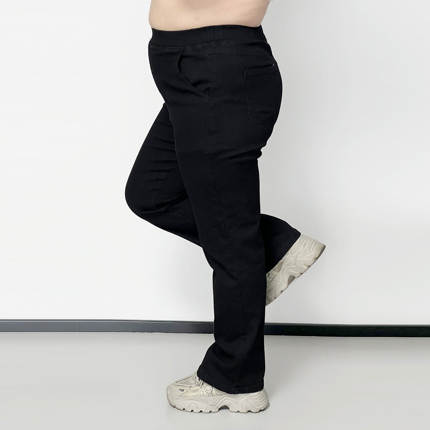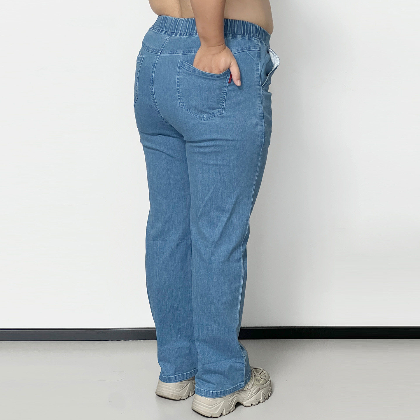300斤胖mm大码牛仔小直筒长裤女 加肥松紧腰弹力薄款直筒牛仔裤子