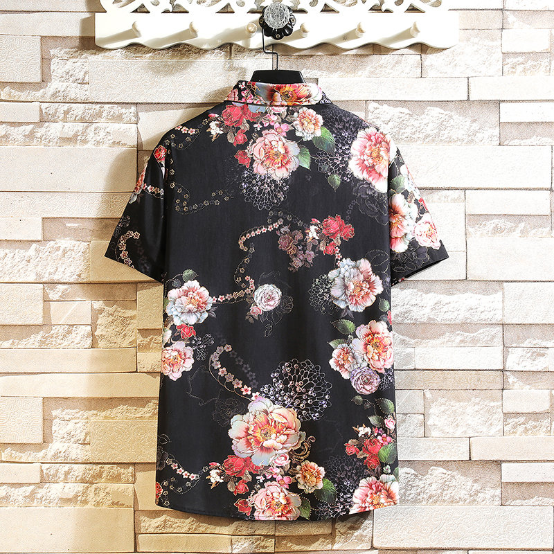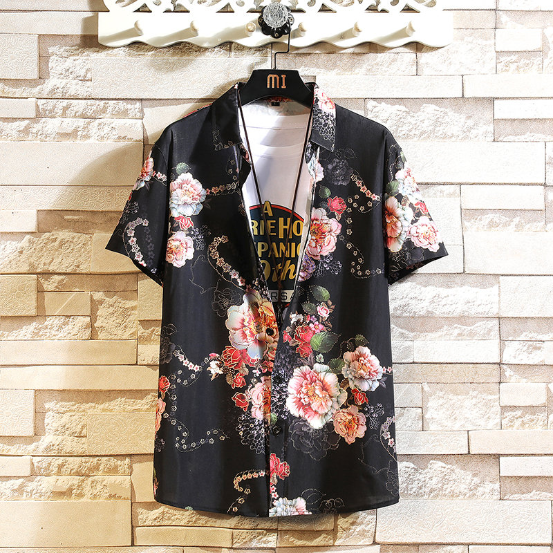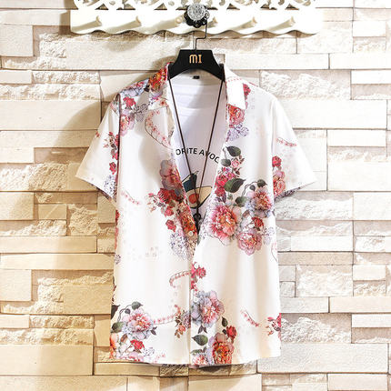 夏季男士旅游沙滩海滩短袖衬衫加大码宽松花色衬衣薄款肥佬半袖衫