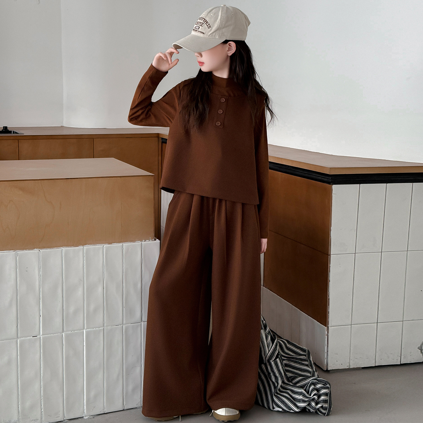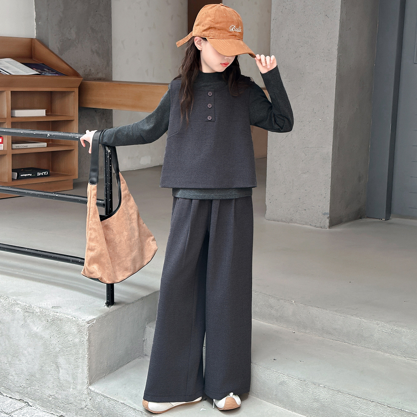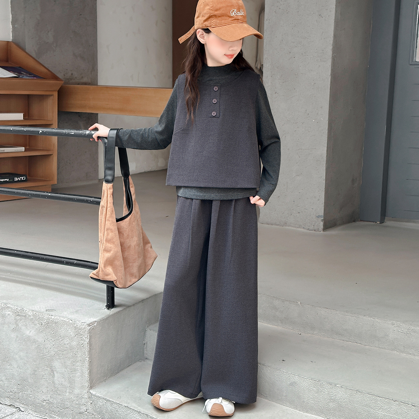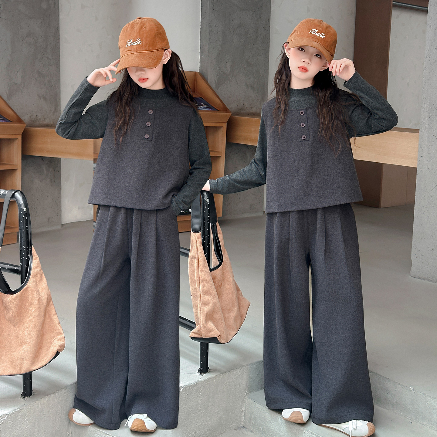 女童春秋季套装2025新款韩系中大童洋气长袖卫衣阔腿裤三件套潮
