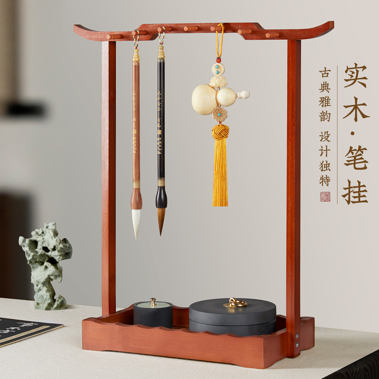 兰斋双层楠竹笔挂毛笔收纳书法挂架现代毛笔架入门笔搁架子楠竹实木笔架摆件复古新中式文房四宝创意