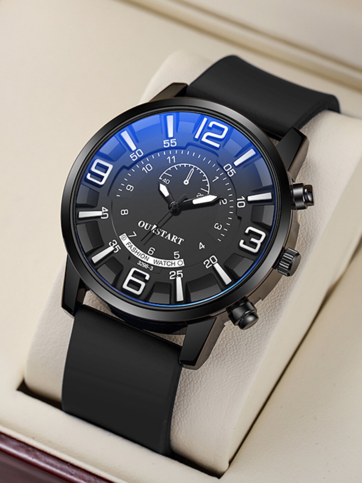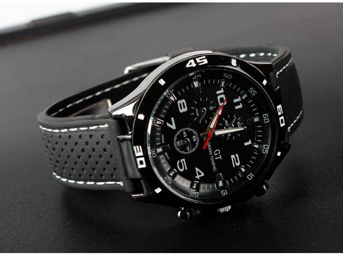 休闲时尚硅胶赛车大表盘男士手表