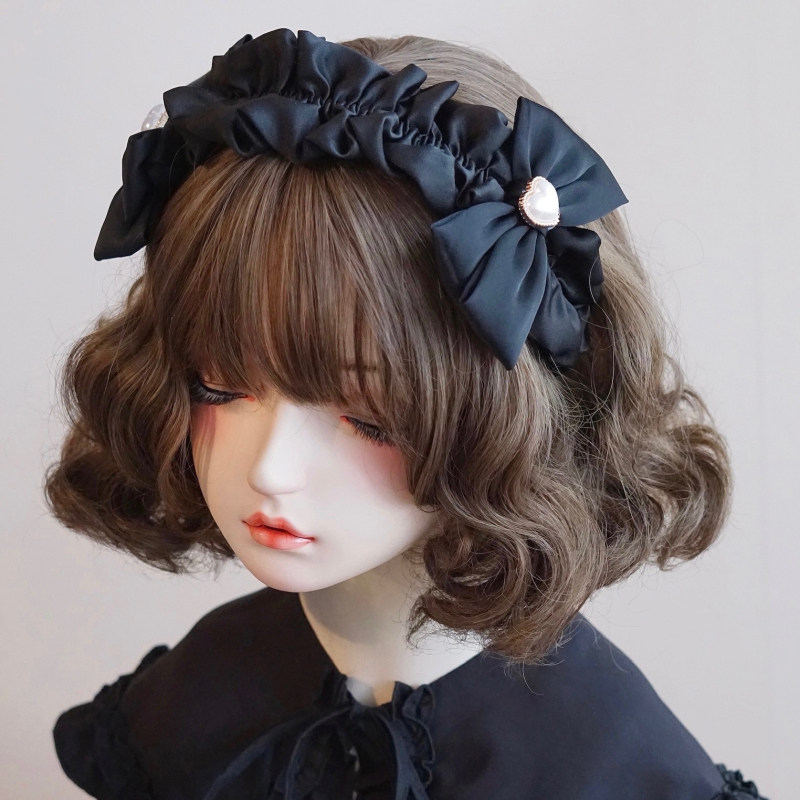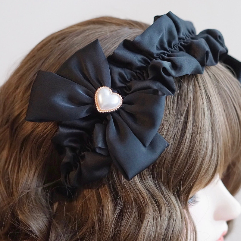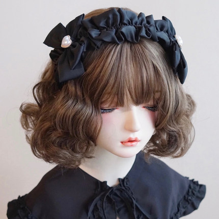 本守造原创手工双爱心蝴蝶结荷叶边发箍头箍软妹百搭甜美黑色