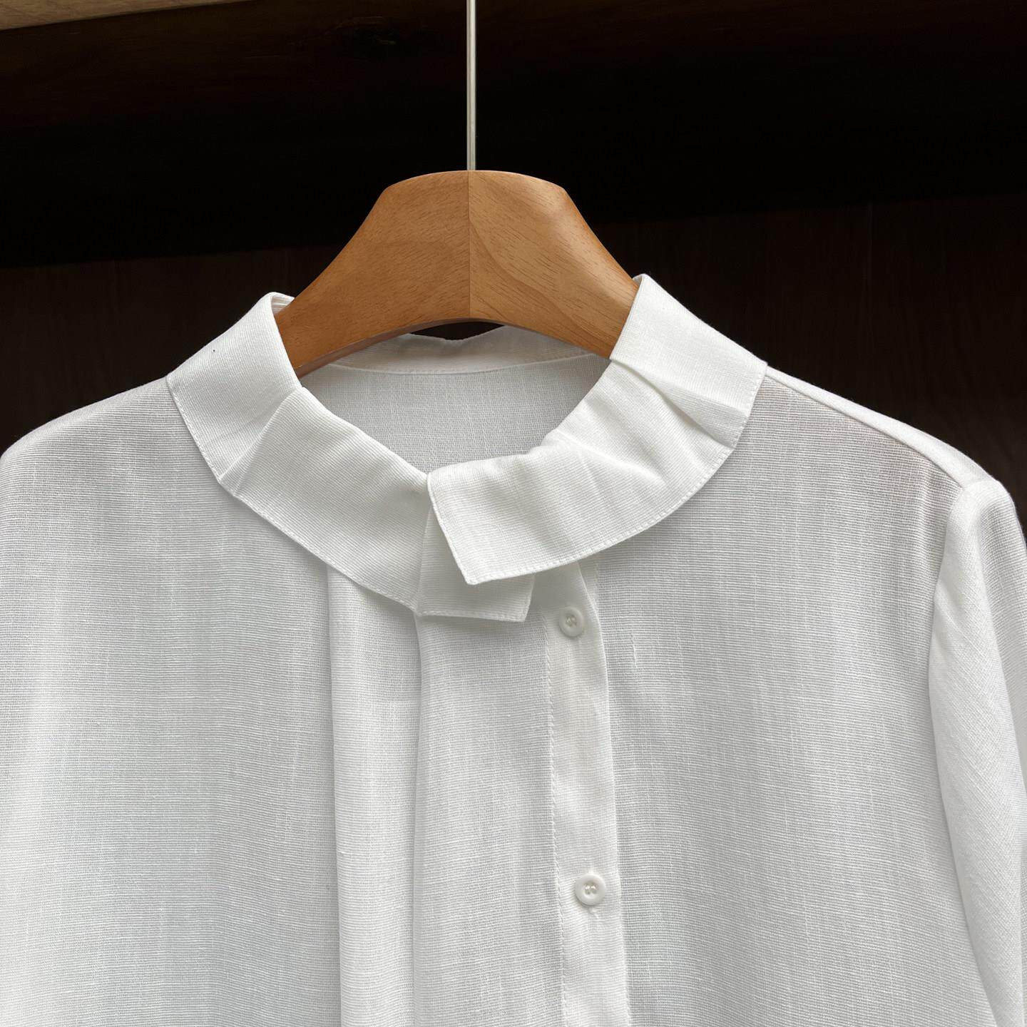 实体女装欧洲站洋气设计感花边领甜美淑微透白色衬衣春季新款特色