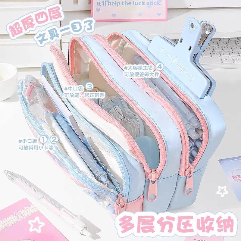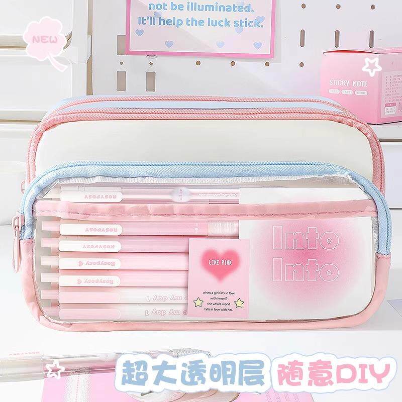 多巴胺透明笔袋套装2025年新款大容量女生高颜值ins风铅笔盒初中生超火撞色女孩款小学高中文具盒简约爆款