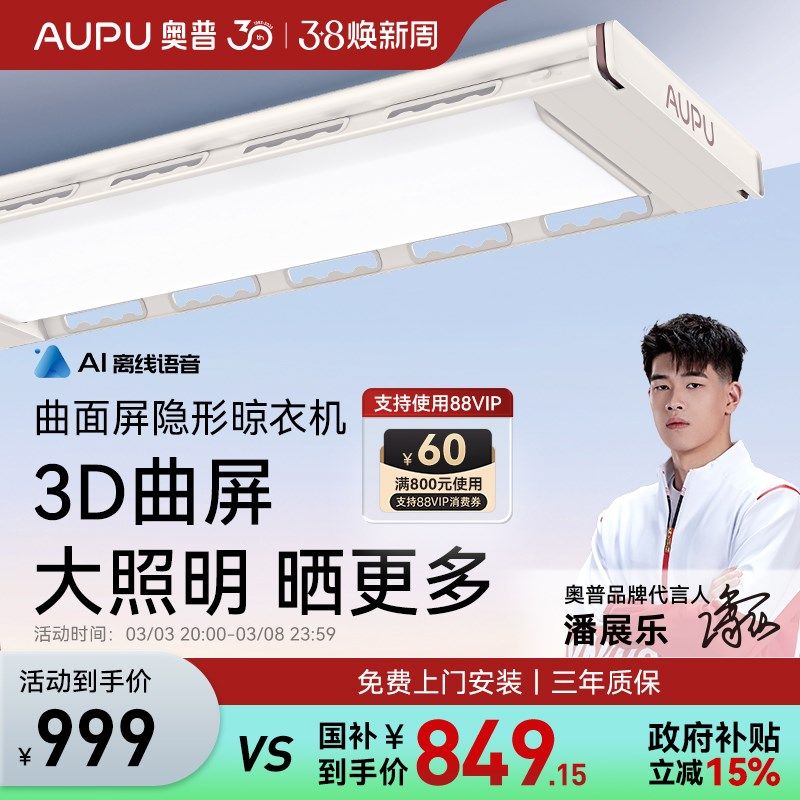 奥普曲面屏电动晾衣架离线语音智能遥控升降阳台晒衣架