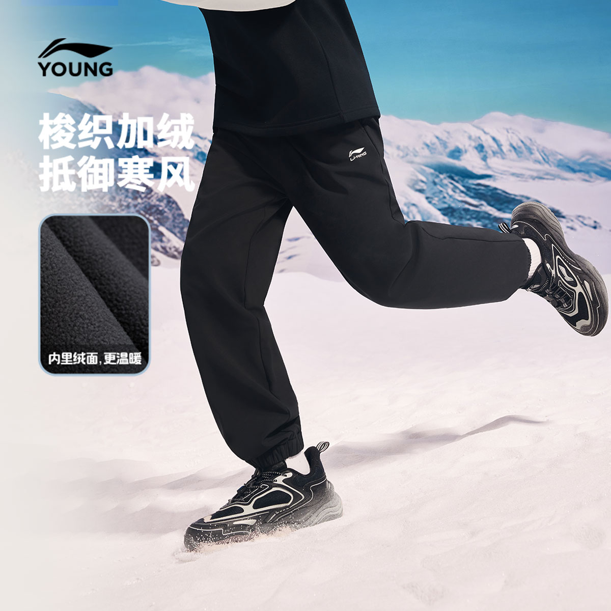 李宁儿童加绒裤子2025新款冬季棉裤男童装女中大童运动裤长裤