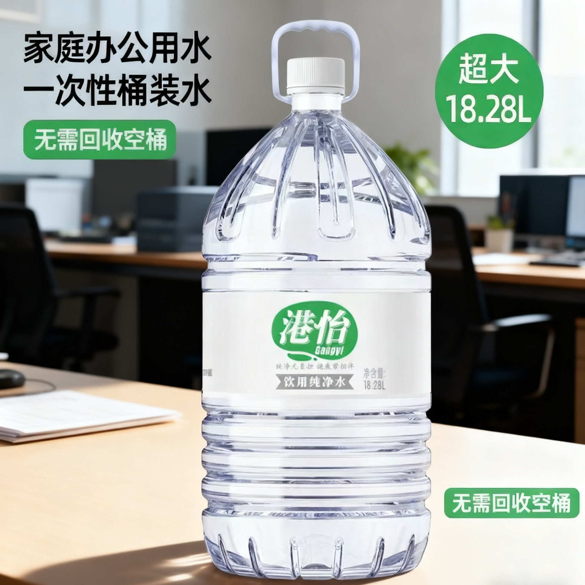 港怡饮用水18.28L超大桶装家庭办公用水一次性桶装水 可放饮水机