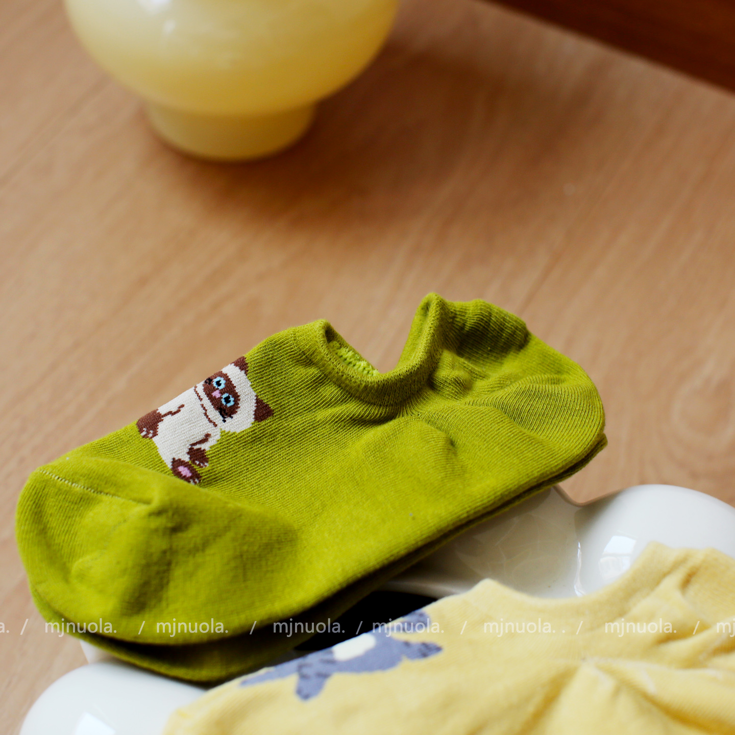 米吉诺拉 简约少女卡通猫猫女袜防滑不掉跟低帮浅口纯棉女船袜子