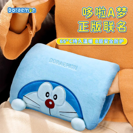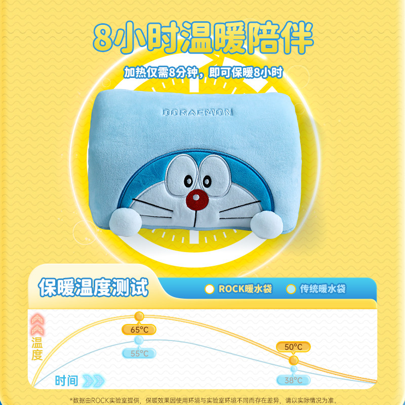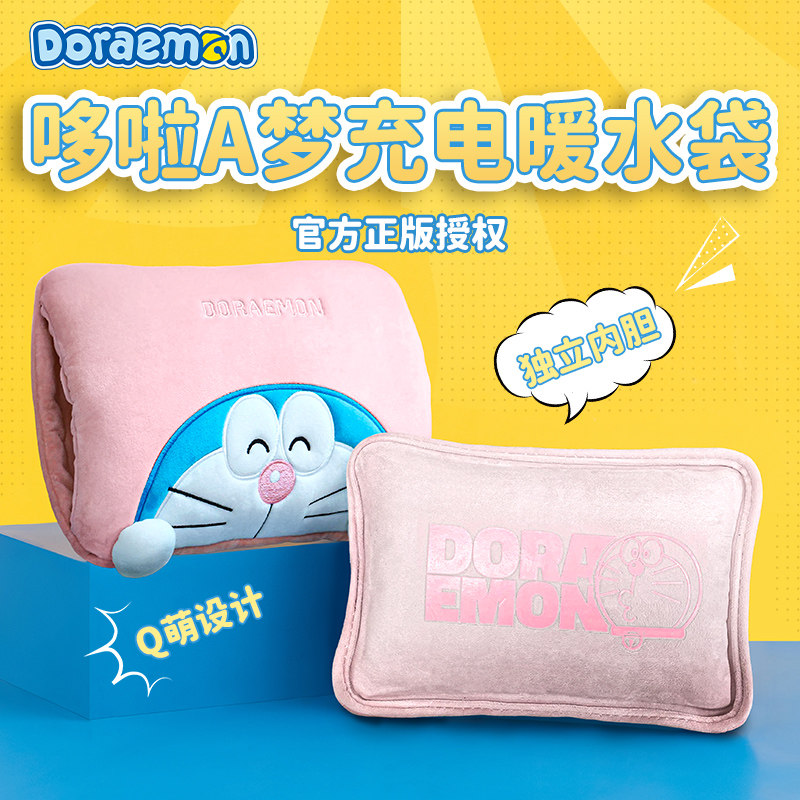 rock哆啦a梦2026新款充电式usb热水袋防爆暖水袋可爱毛绒暖脚神器暖手宝暖宝宝敷肚子女生被窝腰宫礼物情人节