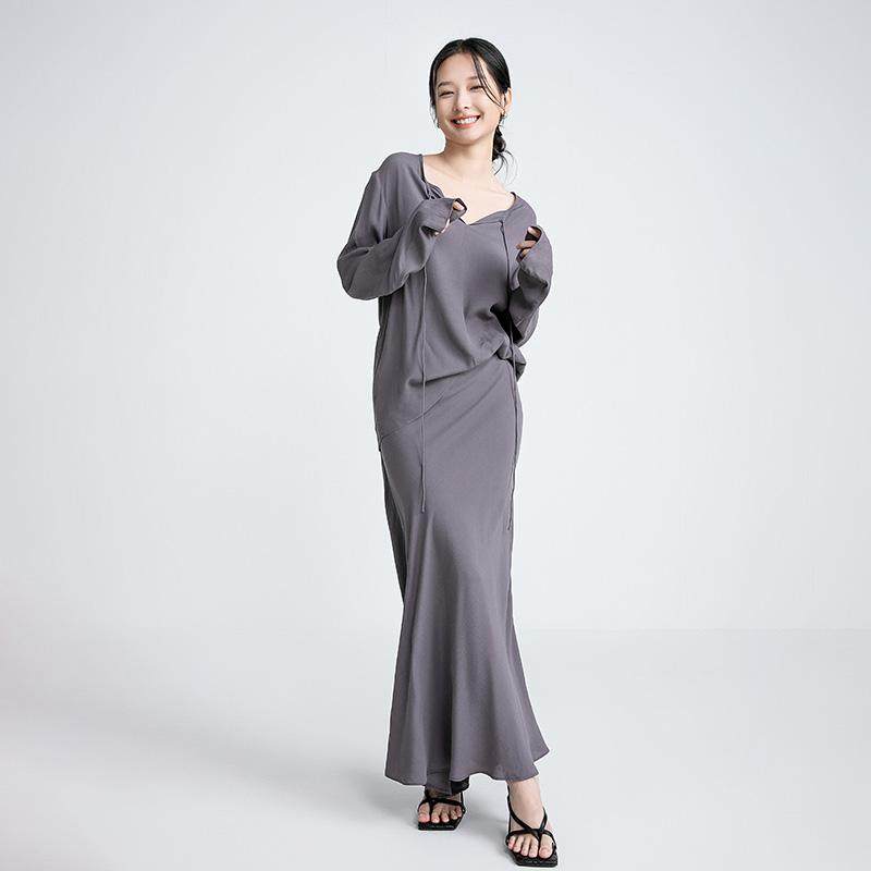 衣唱衣合 2025年秋季套装 时尚通勤休闲长袖上衣加斜裁鱼尾半身裙