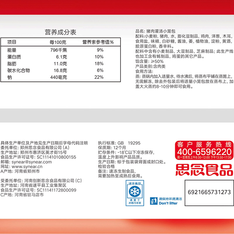 思念灌汤小笼包猪肉三鲜广式早茶包点广东营养早餐速冻点心包子