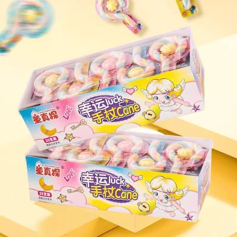 手杖造型棉花糖儿时经典回忆混合果味糖果小时候的棉花糖零食解馋