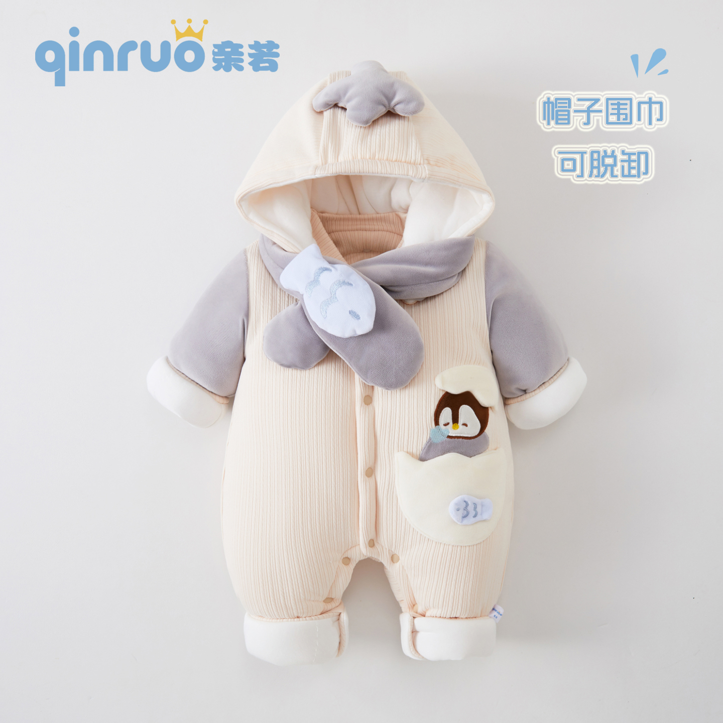 婴儿棉衣宝宝连体衣冬季加厚棉服新生儿棉袄外出服抱衣连帽a类