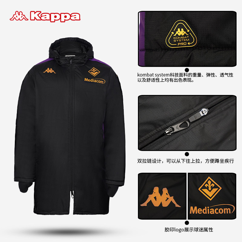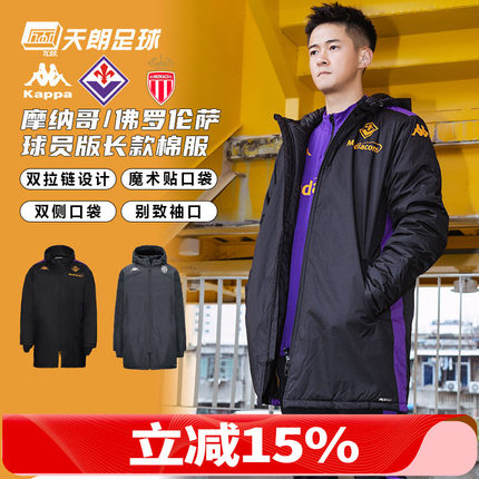 天朗足球 KAPPA卡帕佛罗伦萨摩纳哥冬休闲保暖中长款棉服球员版