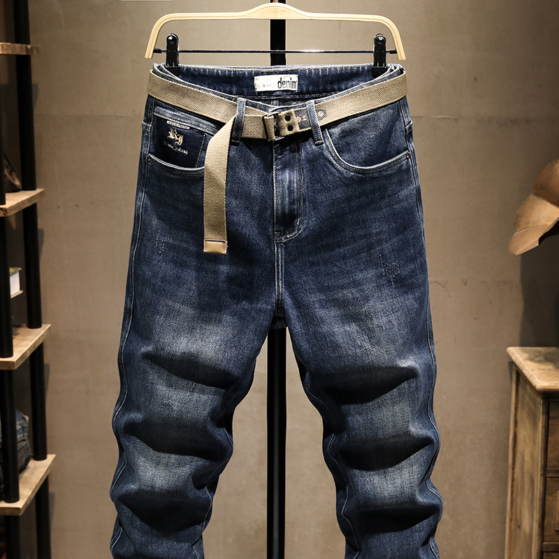 秋冬新款牛仔裤男款宽松小脚潮牌韩版水洗潮流微哈伦长裤子男休闲