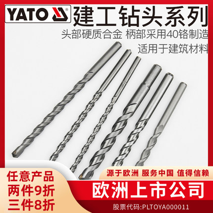 YATO合金冲击建工钻头圆柄手电手枪钻多功能水泥混泥土墙壁打孔钻