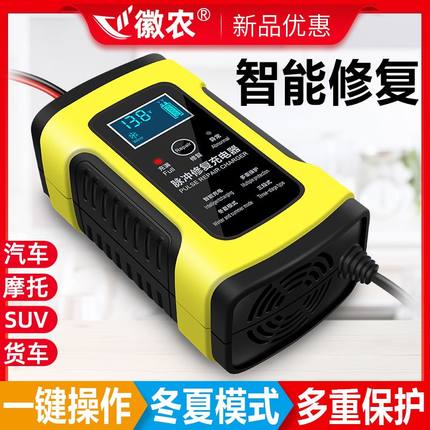 徽农汽车电瓶充电器12v摩托车蓄电池充电机智能自动通用修复型蓄