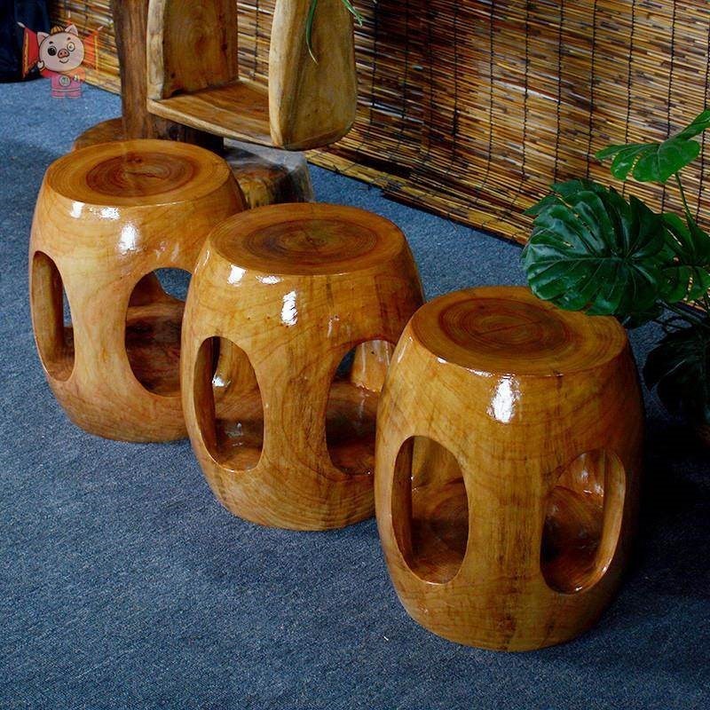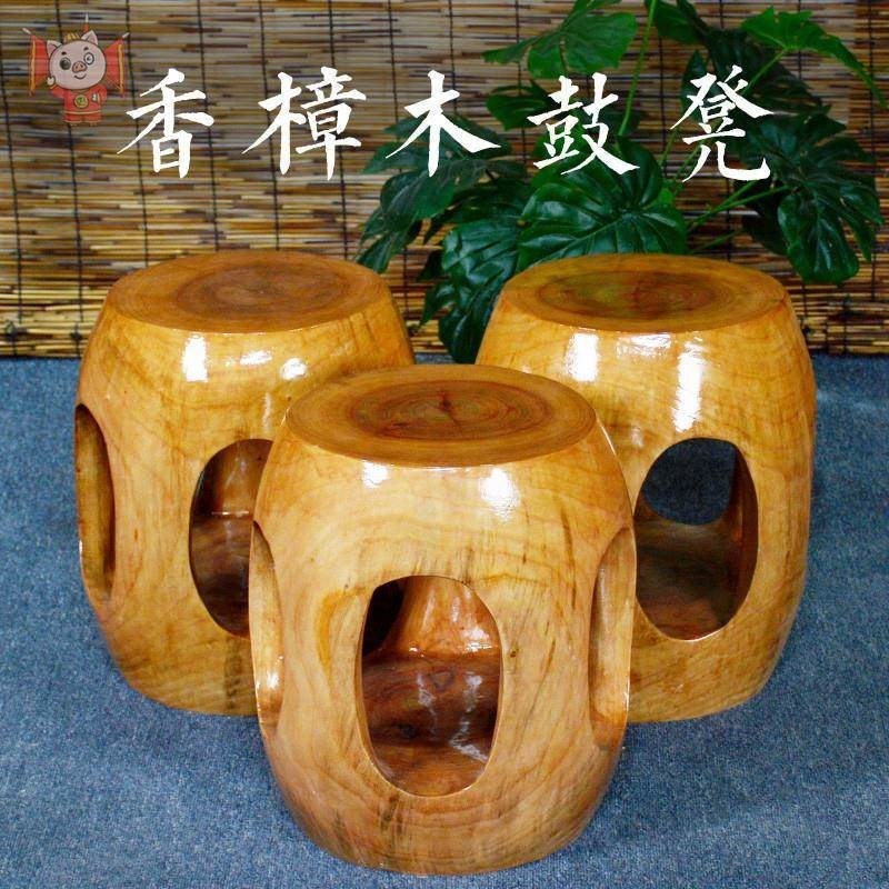 新中式客厅家用鼓凳小凳子矮凳圆凳实木凳香樟木换鞋凳古筝木厂家