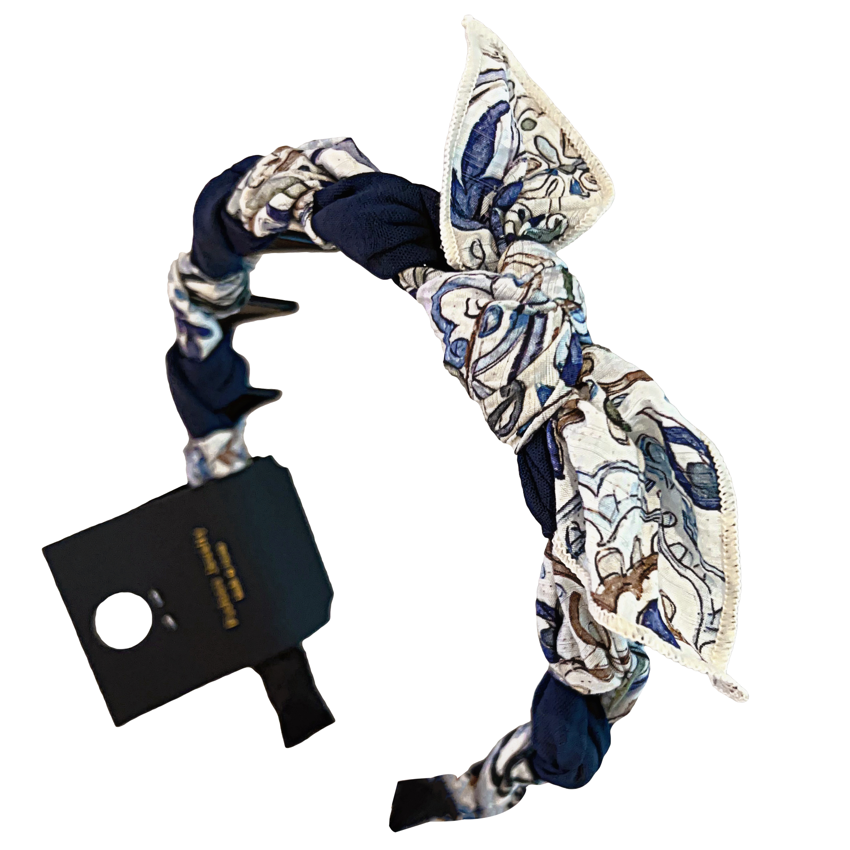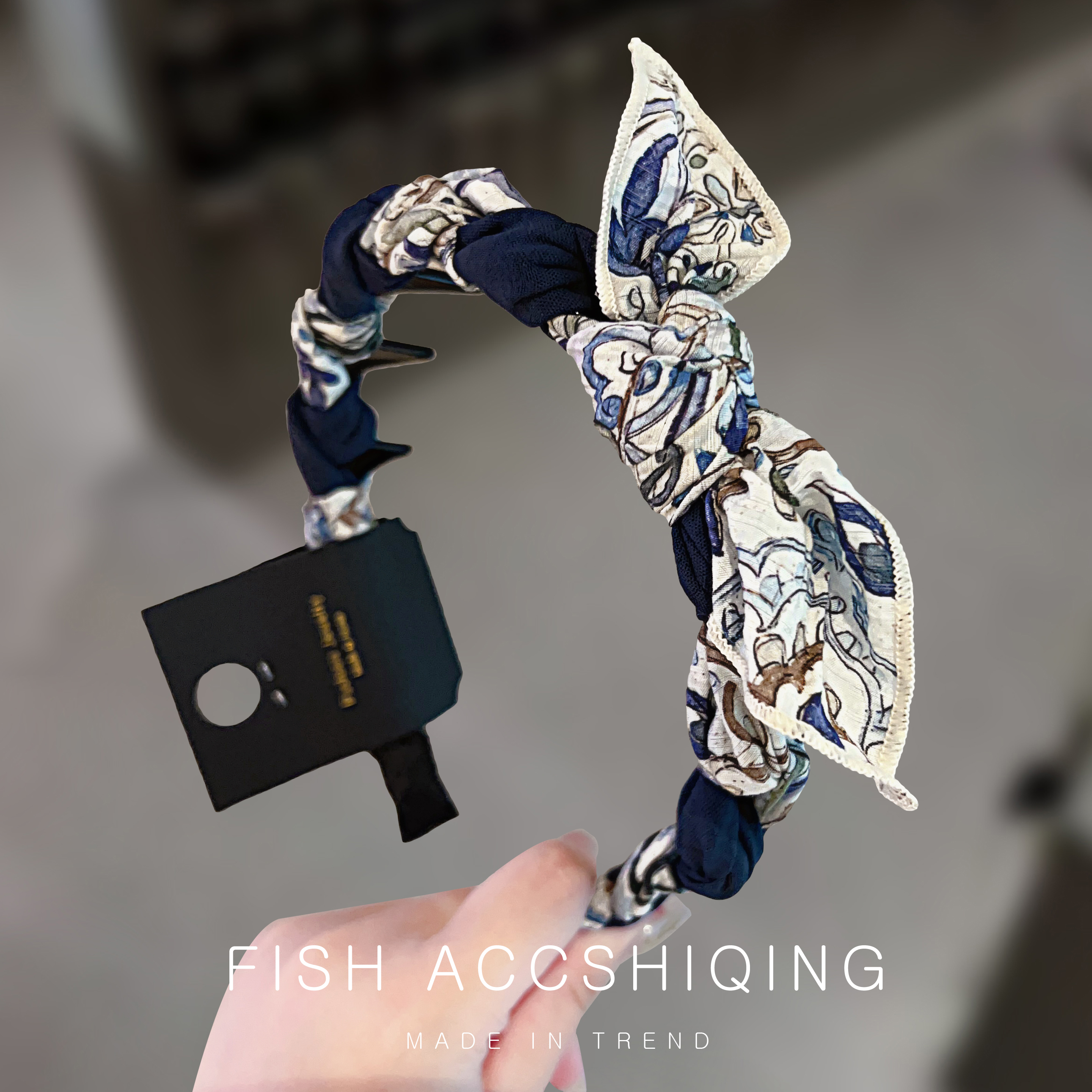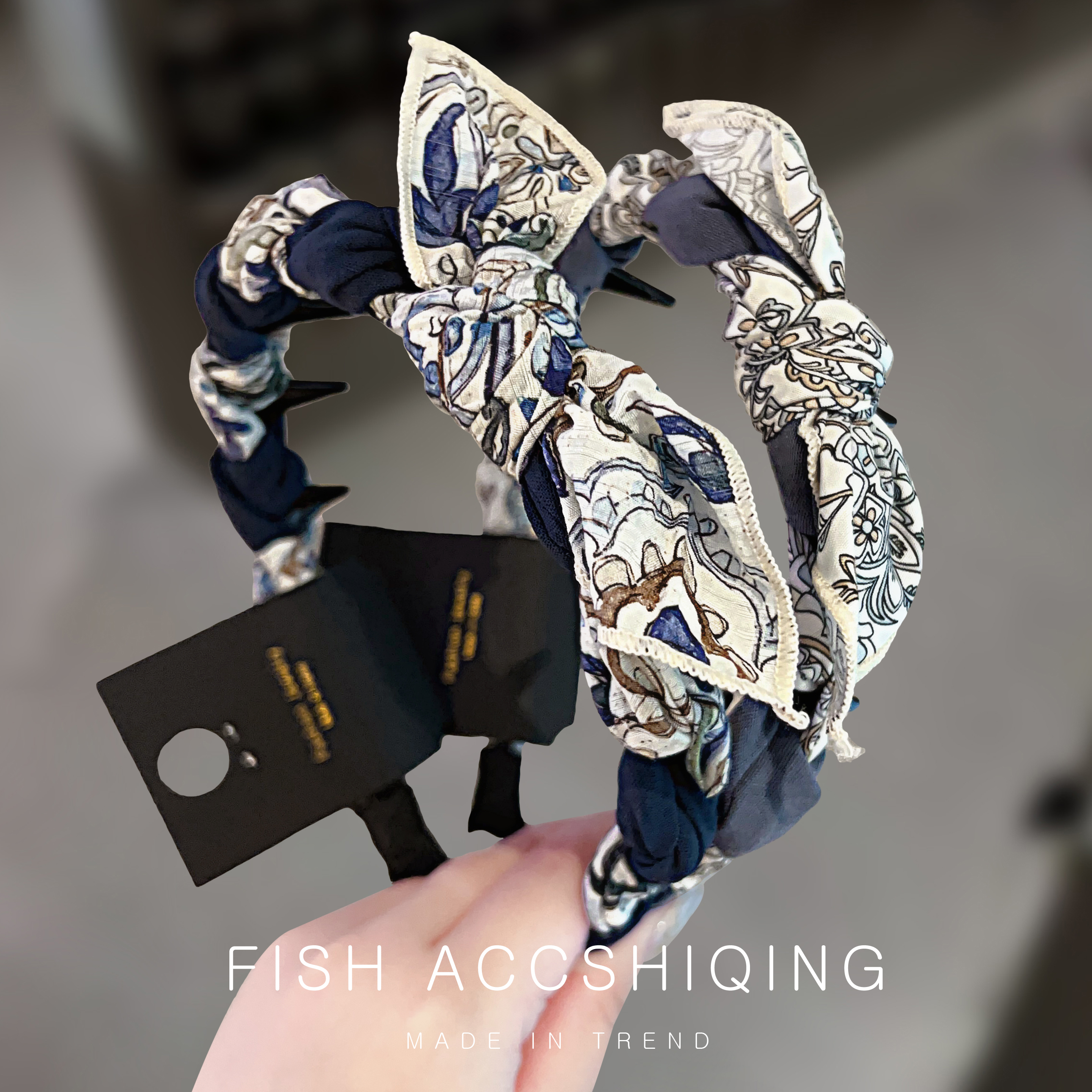 牛仔风印花布艺蝴蝶结带齿洗脸发箍女百搭压发时尚气质头箍发饰