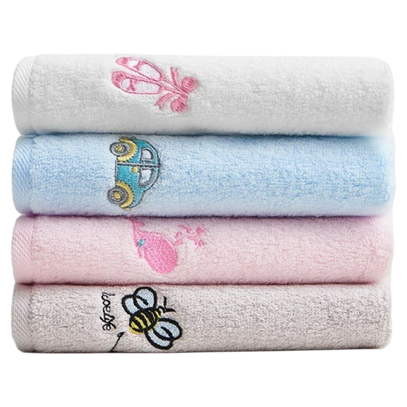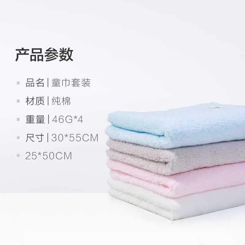 4条装三利童巾A类儿童毛巾无捻纱卡通纯色全棉柔软蓬松宝擦手洗脸