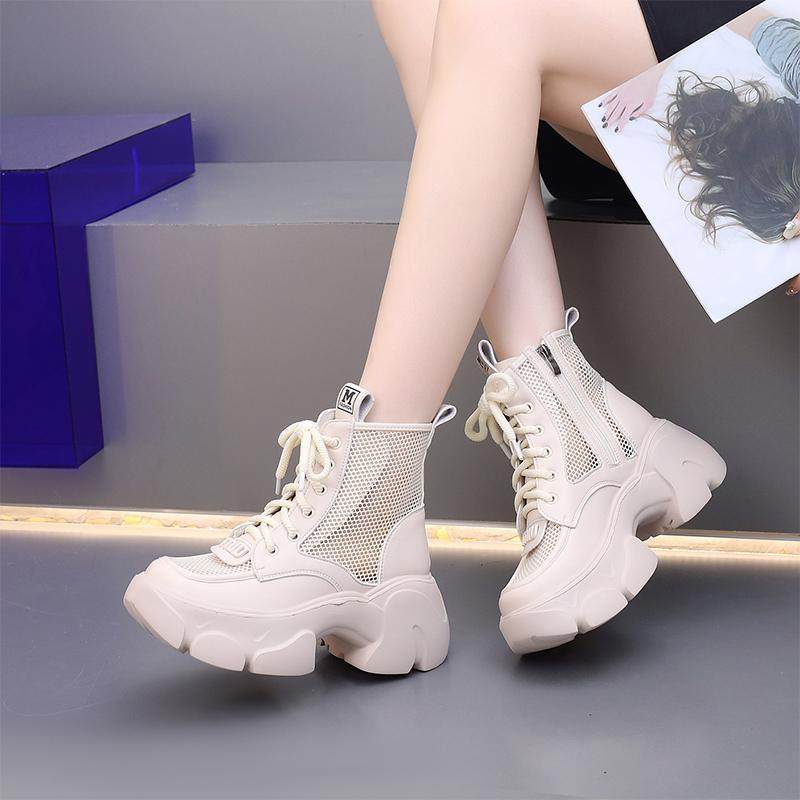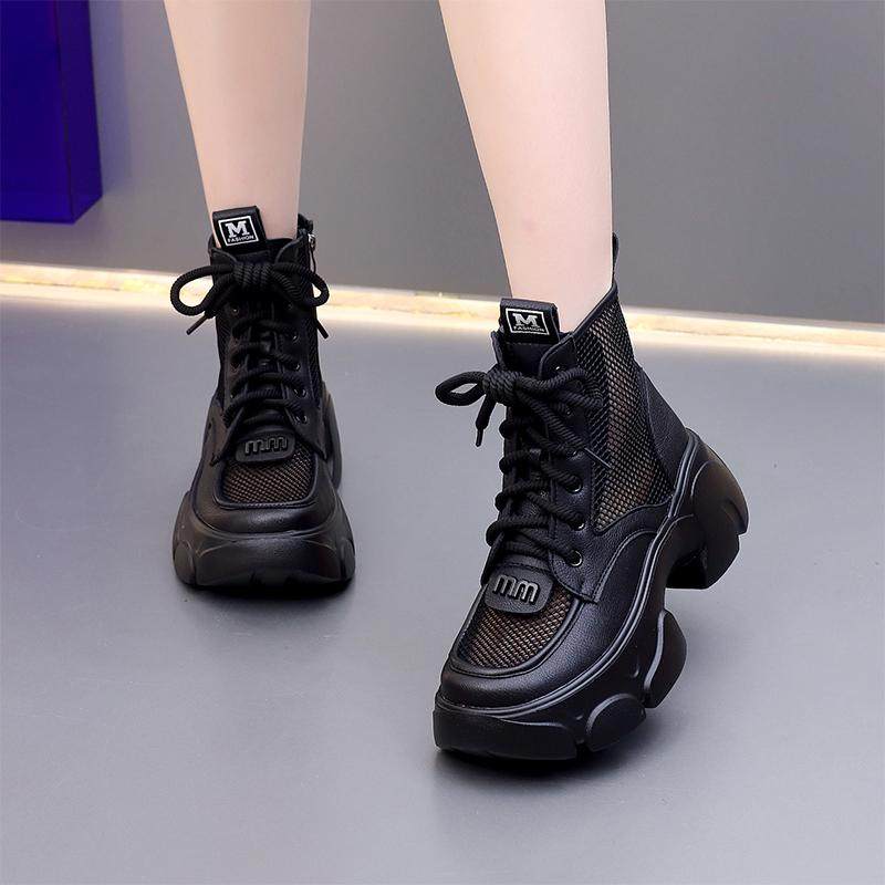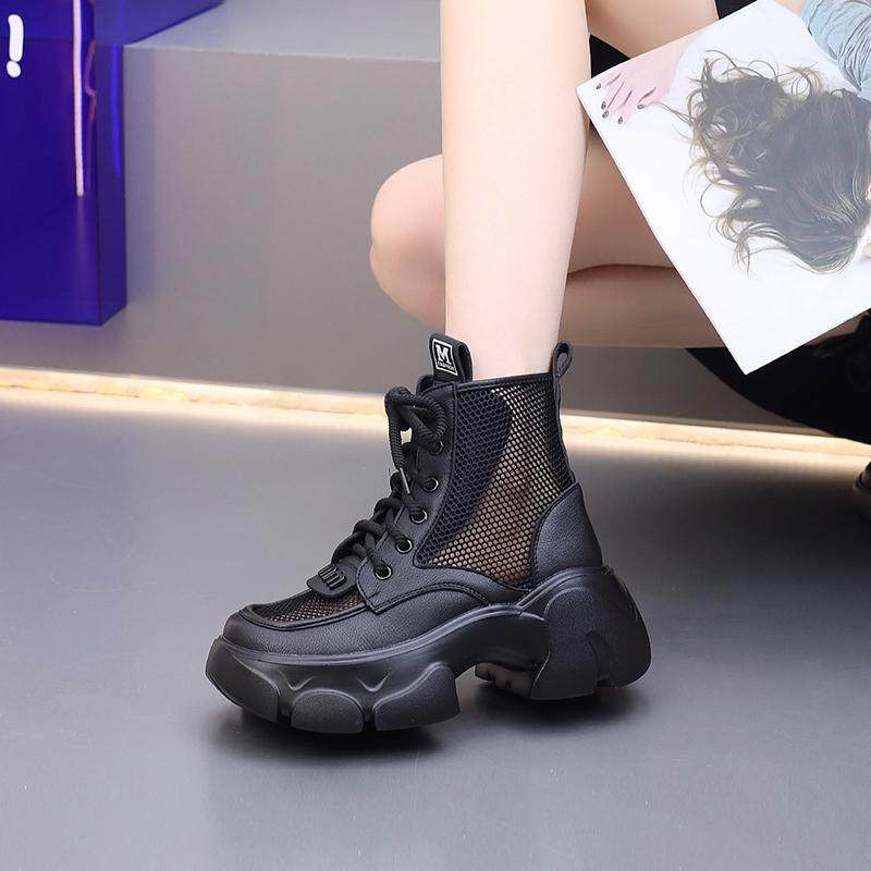 真皮厚底镂空马丁靴女2025夏新款百搭凉靴小个子增高显瘦薄款网靴