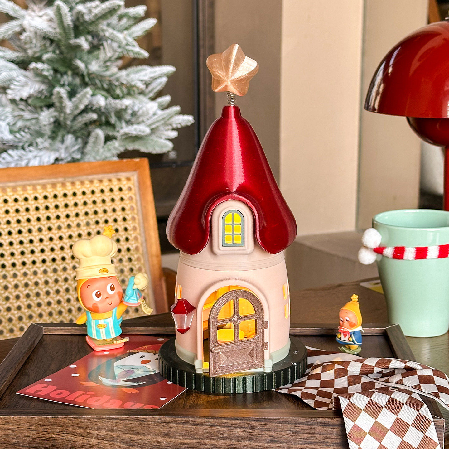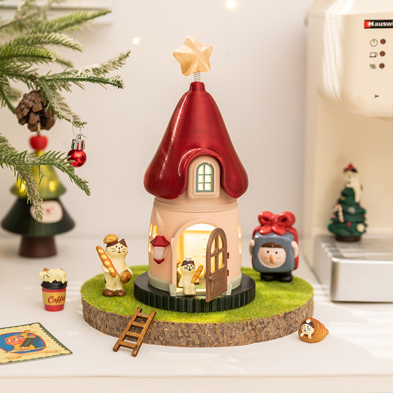 可爱蘑菇屋小夜灯摆件盲盒展示架
