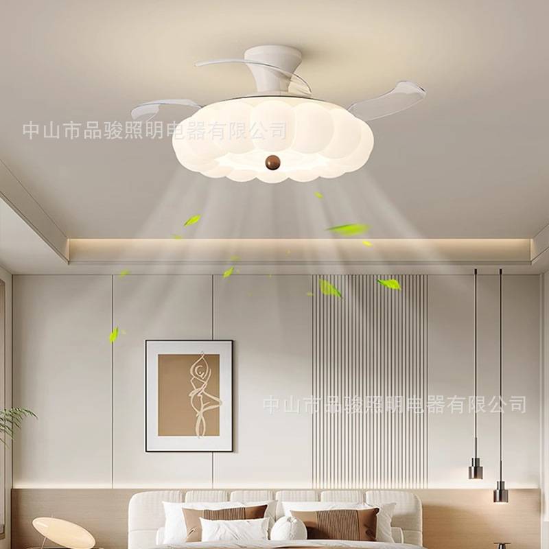 全光谱现代简约隐形风扇灯卧室客厅餐厅吊扇灯奶油风家用新款电扇