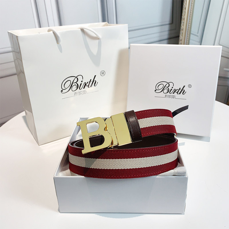 BIRTH年轻人皮带男帆布B字b家真皮腰带男士青年韩版潮休闲百搭