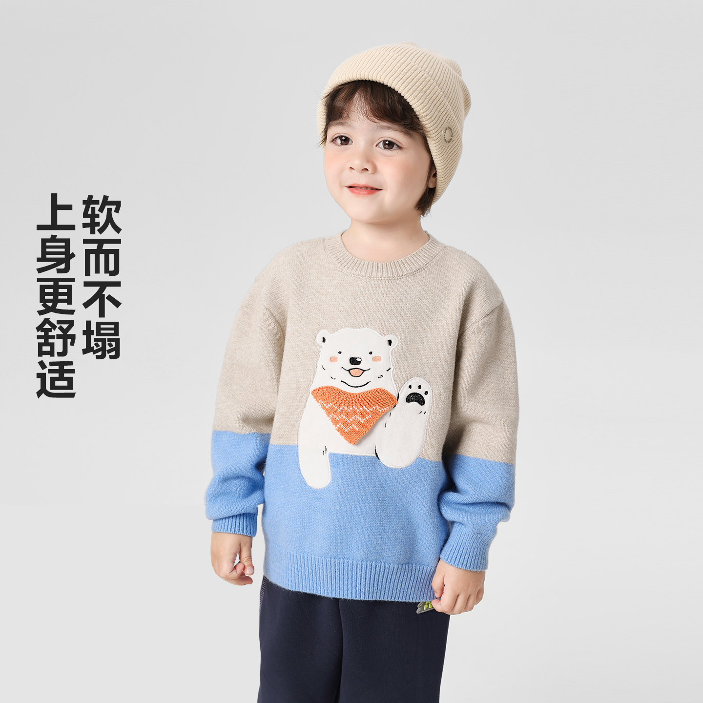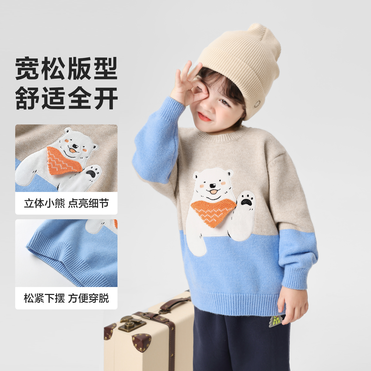 右欧男童女童毛衣北极熊撞色儿童针织衫可爱休闲风秋冬季新款童装