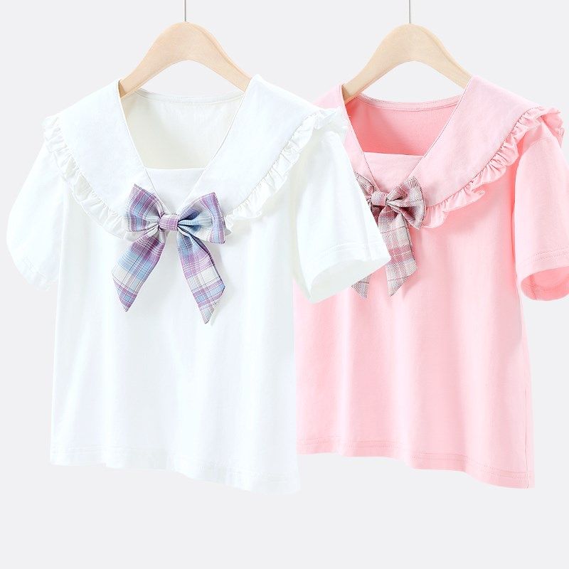 女童JK套装儿童夏季新款学院风洋气夏装大童短袖T恤两件套裙子薄