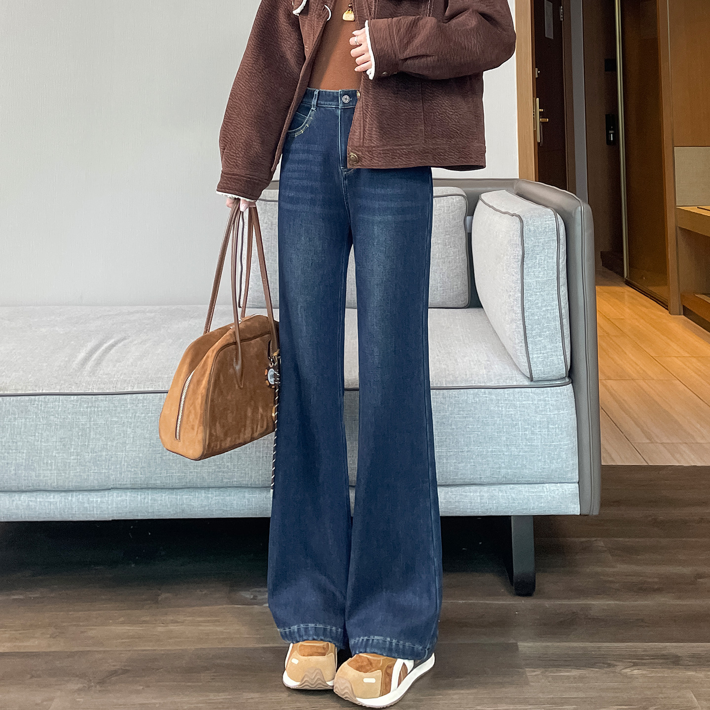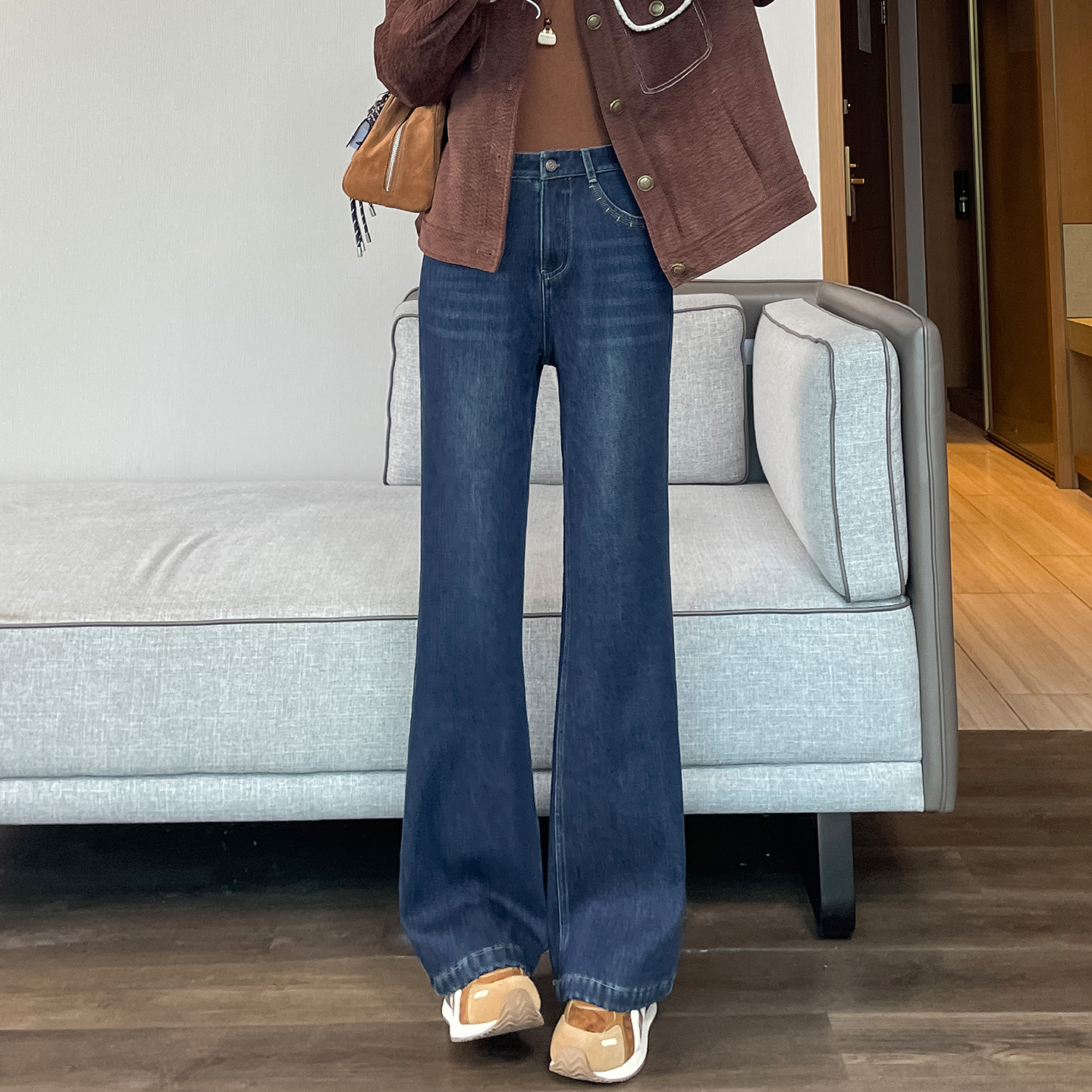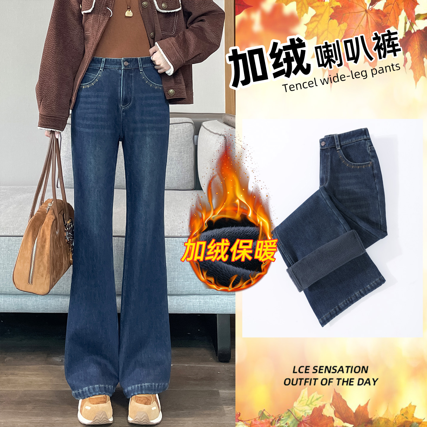 加绒牛仔微喇裤女冬季2025新款高腰显瘦百搭加厚保暖弹力喇叭裤子