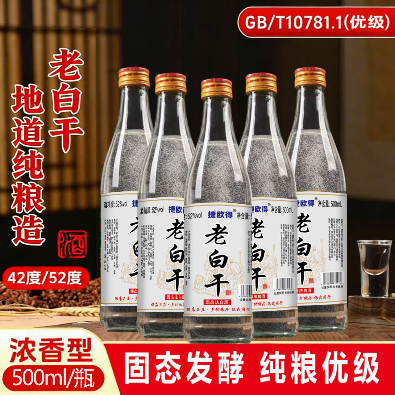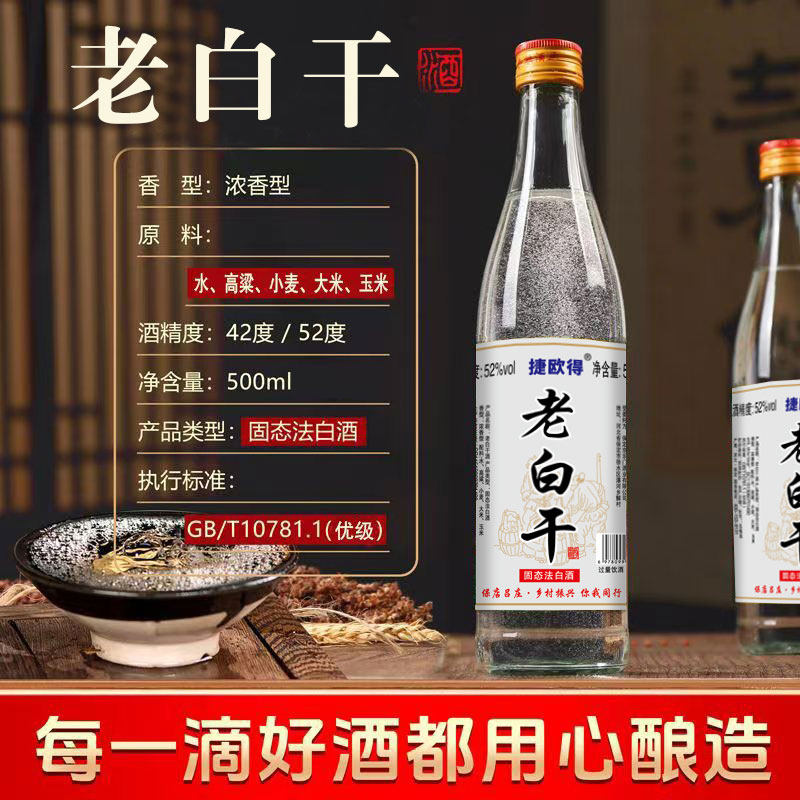 捷欧得河北老白干固态法纯粮酿造GB/T10781.1浓香型白酒42度52度