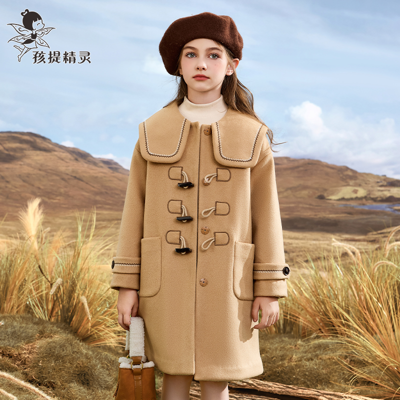 女童海军领呢子大衣2025秋冬新款洋气大童牛角扣夹棉毛呢外套儿童