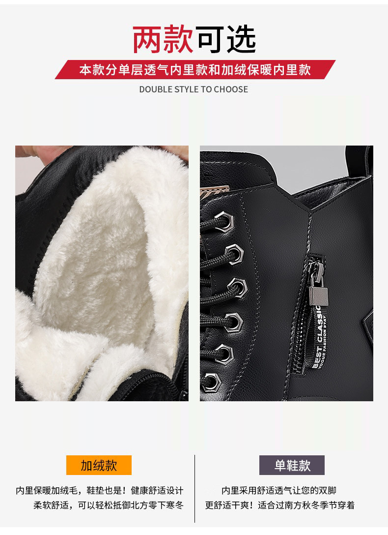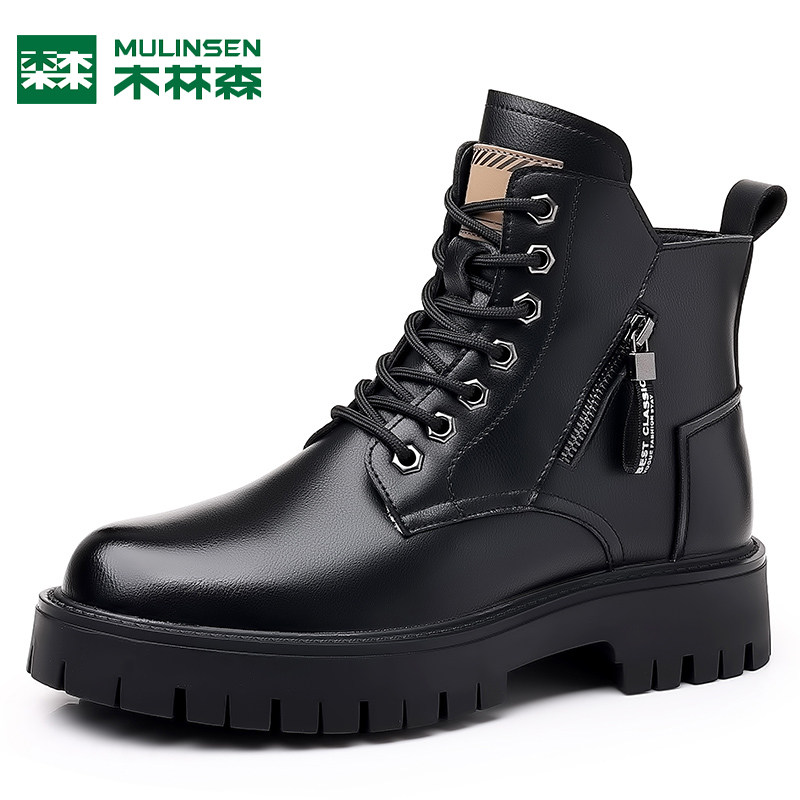 木林森马丁靴男加绒羊毛雪地棉靴