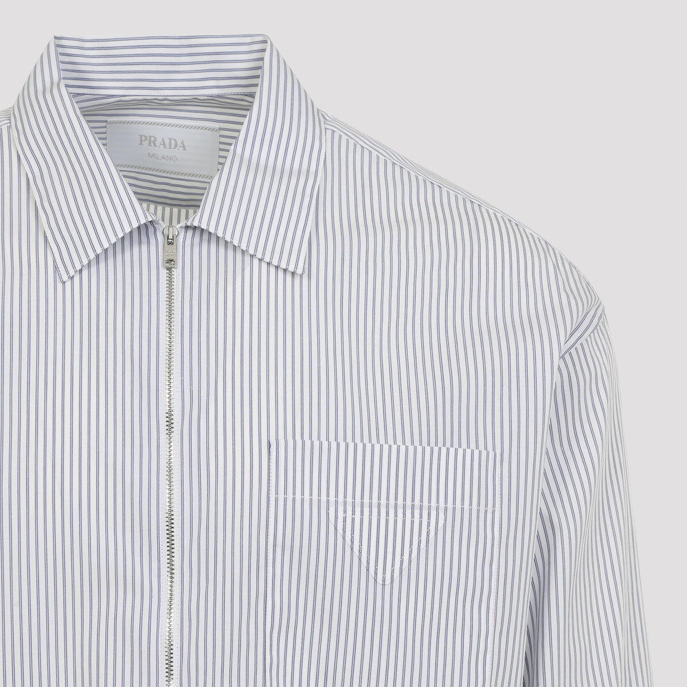 1h可退 潮奢 Prada 普拉达 男士 蓝白棉质衬衫 SC855SOOO189F
