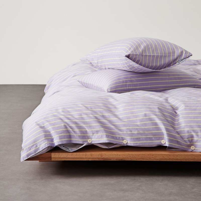 设计师款全棉床上四件套纯棉简约风条纹长绒棉三件套被套1.8m床笠