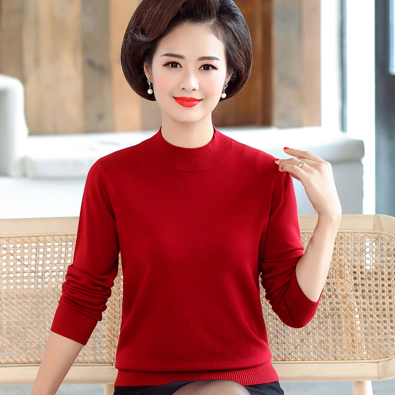 超舒适妈妈薄款羊毛衣中老年人春秋内搭穿上衣服中年女秋装打底衫