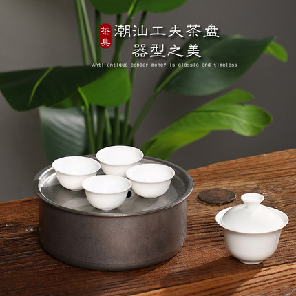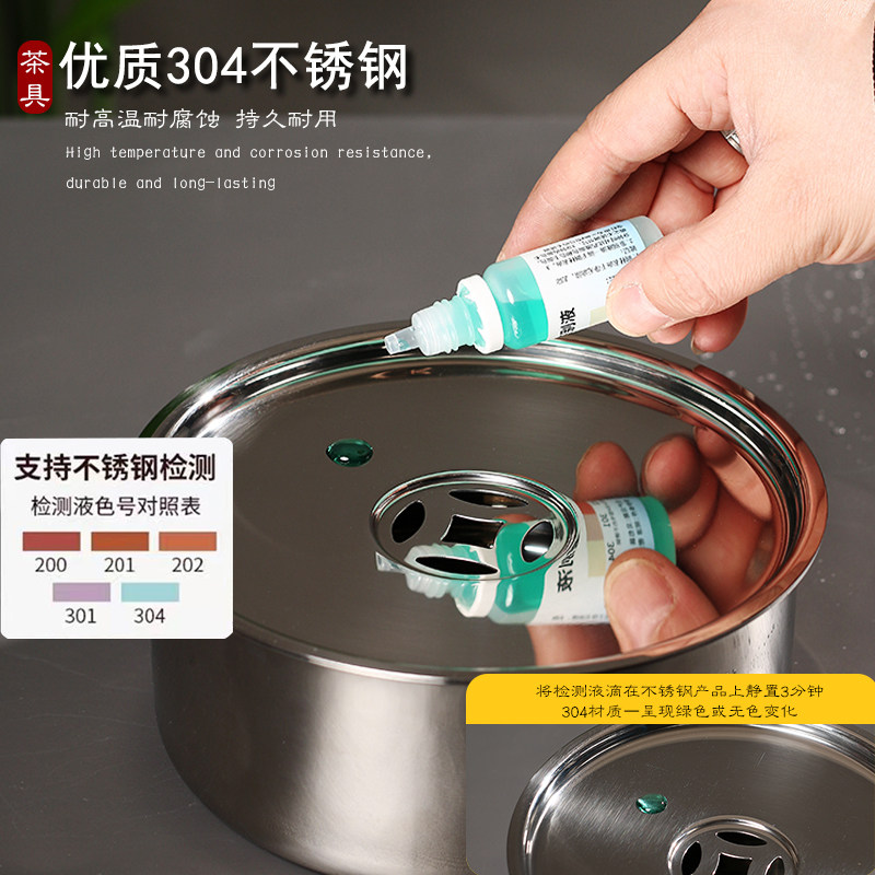新款圆形不锈钢工夫茶盘储水家用户外便携茶托盘茶具全套干泡台