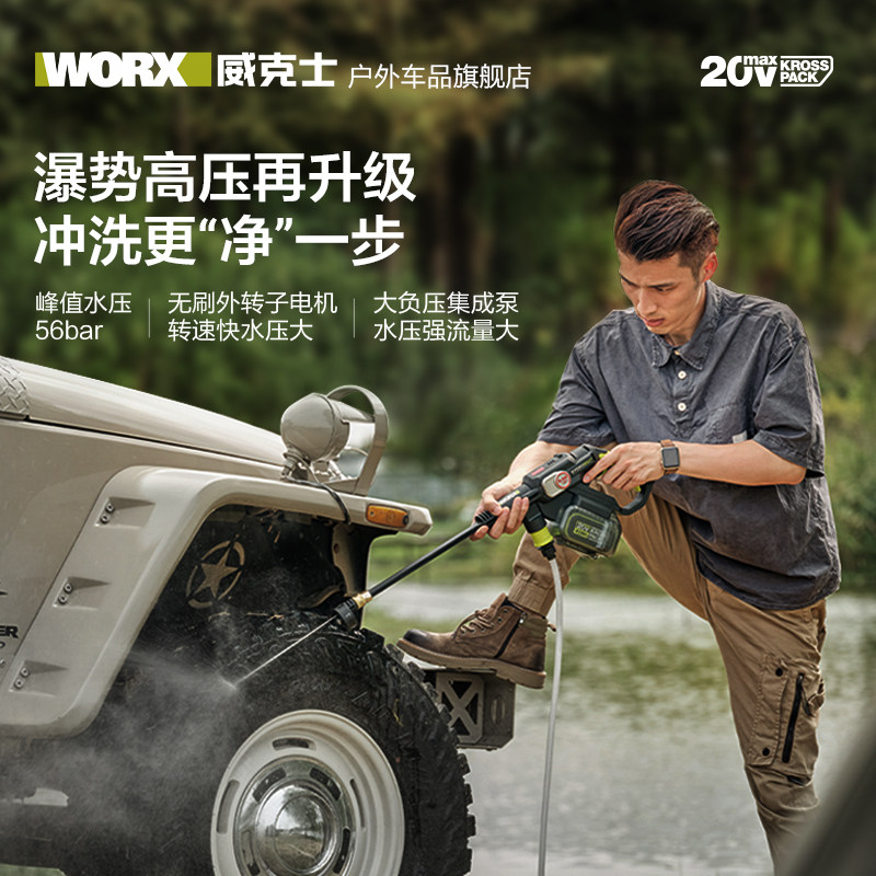 威克士WU633洗车机高压锂电清洗机无刷无线水枪WU623电动洗车水枪