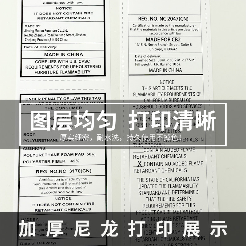 加厚尼龙水洗唛空白可打印水洗标西装口袋标成分标干洗店洗水标卷