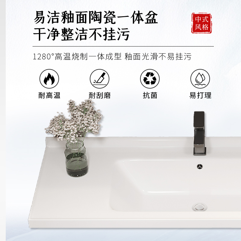 新中式浴室柜组合卫生间实木洗漱台洗手盆洗脸盆柜一体陶瓷盆组合