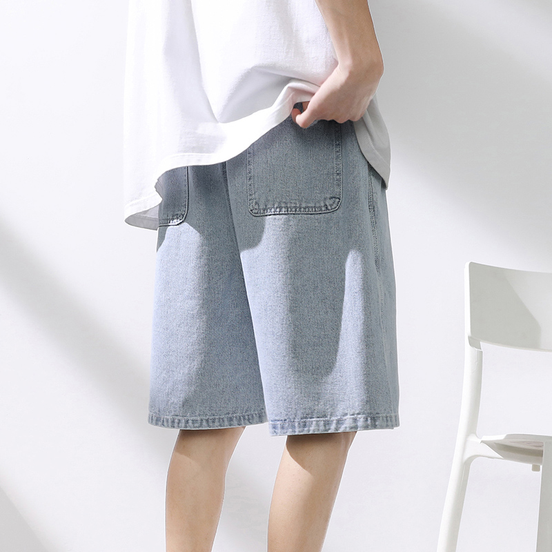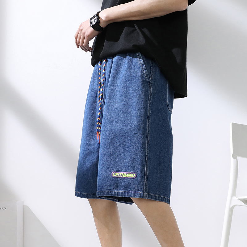 男士牛仔短裤休闲夏季薄款外穿中裤2024新款潮流宽松字母五分裤子