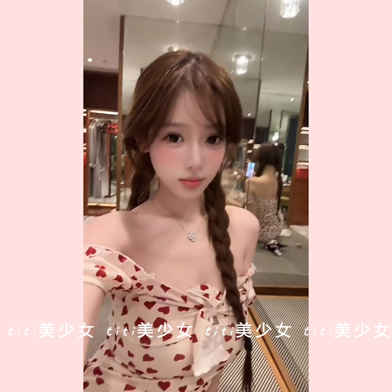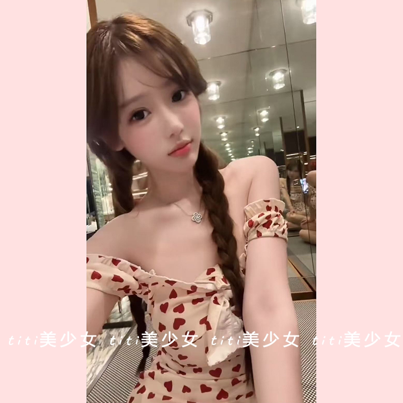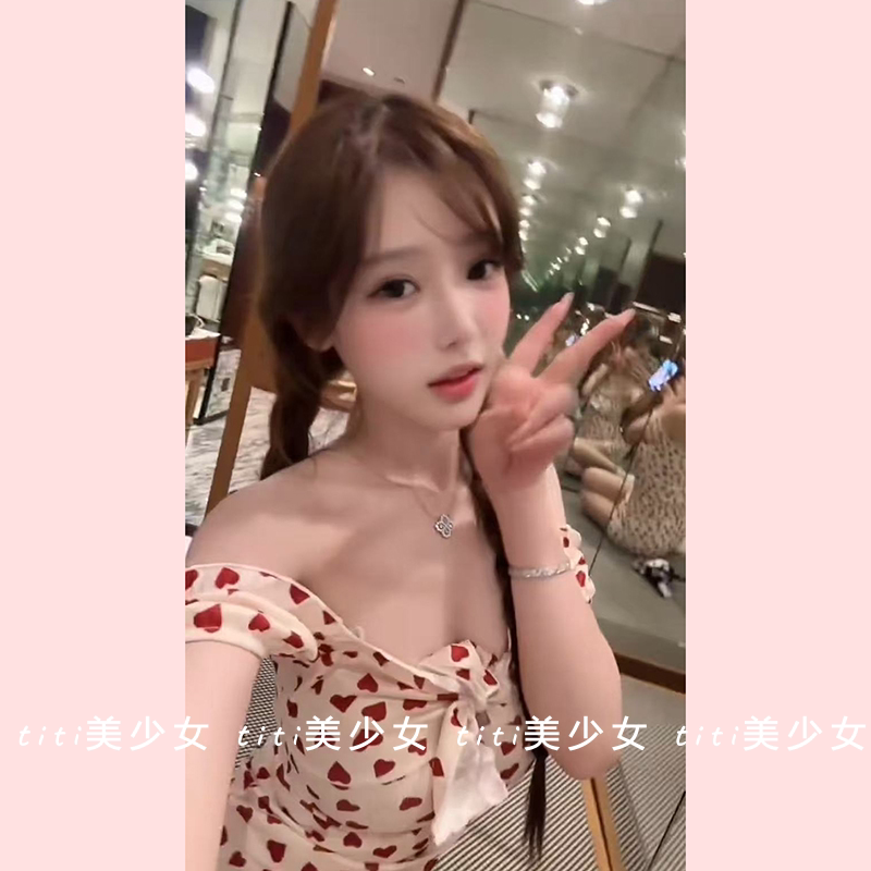 【TiTi美少女】纯欲性感印花连衣裙设计感绑带甜美辣妹修身包臀裙